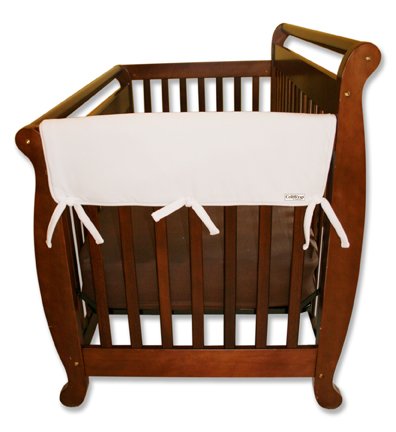 White Fleece CribWrap Convertible Crib Rail Cover-27"-for use on side rails. Protect your baby, and protect your crib investment from teeth marks. Just wrap and tie on. Safer solution is lightly padded with a waterproof layer. Machine washable in super soft Sherpa fleece. 2 pieces included.