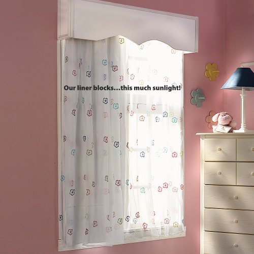 Awake at the first ray of sunshine? Can't fall sleep when it's still light outside? If daylight interferes with your baby or child's sleep, try our blackout curtain liners. These room-darkening drapes block out daylight, muffle outside noises, and provide energy-efficient insulation, too. Blackout drapes work under all curtain types, or you can use them alone. Can be easily trimmed without fraying. Each window panel is 27"W, with sewn-in rod pocket. Optional hanging hooks included. Poly-cotton. Imported. So popular, we added a longer sizeA OneStepAhead Exclusive!. Blackout curtains help babies and kids sleep, by blocking out daylight and noises (did you know 20% of sunlight can permeate closed eyelids?) . These room-darkening liners also provide insulation, keeping rooms warmer in winter and cooler in summer. Aside from gained sleep, they may pay for themselves in energy savings. . Blackout drapes help prevent the fading of carpets and furniture, protecting your investment . Layer these under your child's curtains, or decorate the liners with paint or markers. Fabric may be painted, stamped, or stenciled for a custom look. . Blackout curtains are 70% polyester/30% cotton; dry clean or wipe clean with a damp cloth . Thread the liners through your curtain rod, or use the optional hanging hooks. 14 hooks included.