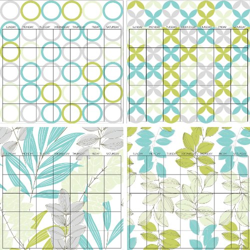 - Contains four 13" x 13" dry-erase calendar sheets
