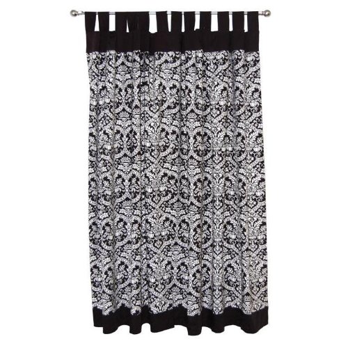 Damask Black and White Tab Top Curtain Panel - A bold and dramatic curtain panel in fashionable black and white to decorate the nursery. Coordinates with the Damask Crib Set for a total room d?cor. Sold in a set of 2 panels, each 42 wide x 63 long.