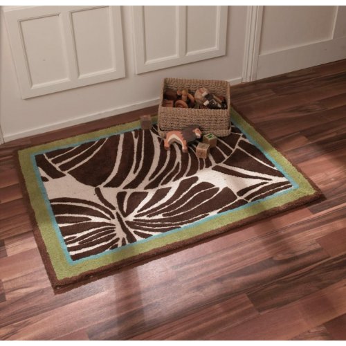 This rug features a brown and tan print surrounded by soft green and blue. Coordinates beautifully with the Bali Bedding Set. 30" x 40"