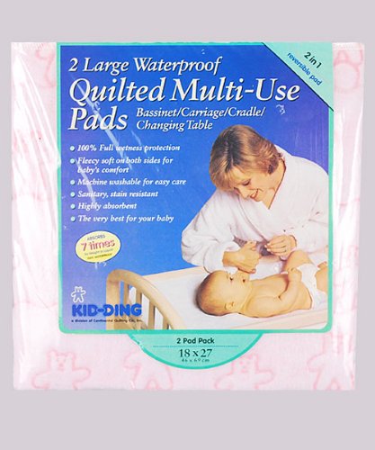 You want nothing but the very best for you baby! This 2 Pack Kid-Ding 18"x27" Quilted Multi-Use Pads from Continental Quilting is just that! With 100% full wetness protection, these pads absorb up to seven times their weight. Crafted of a soft fleecy material on both sides for baby's comfort and best of all, they're sanitary and stain resistant! Each pad measures 18"x27". Machine washable.